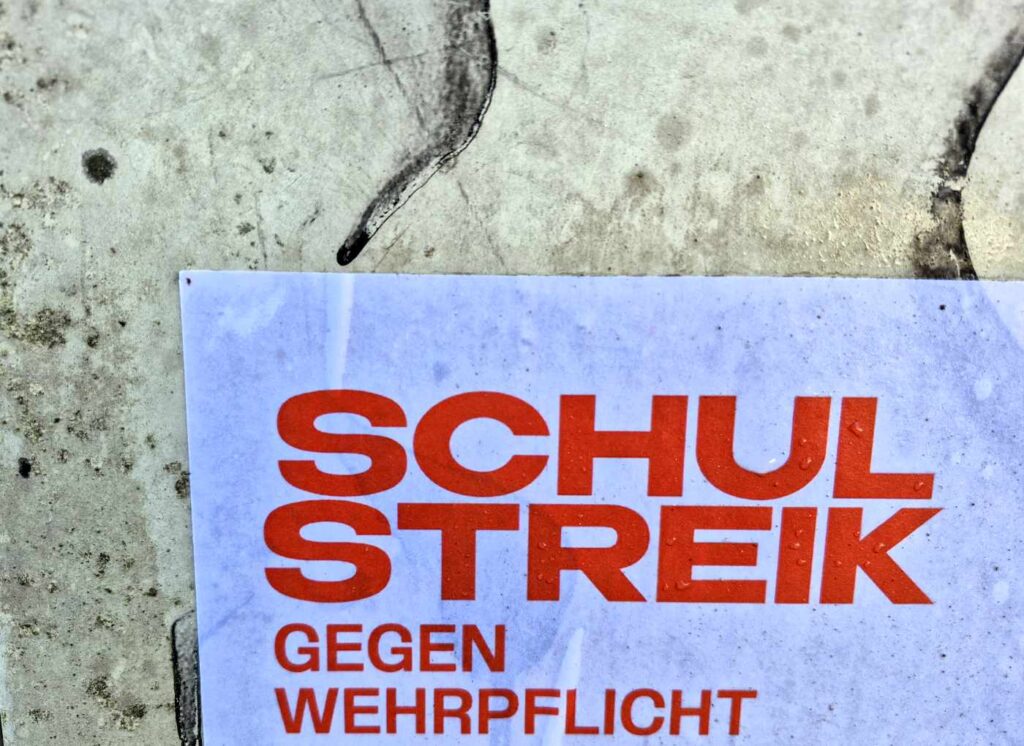 Ein Protest wie dieser heute in vielen Städten. In den Kommentarspalten unter den Berichten darüber sind sich die nichtjugendlichen Kommentatoren uneins. Einerseits: Ein Jahr Armee hat noch niemanden geschadet, In der DDR wurden alle eingezogen, Aber baller Spiele im Internet spielen, Sollten lieber in die Schule gehen, Diese Generation ist einfach nur noch lächerlich, Weicheier, Die Wänste schaffen ja nicht mal mehr ihr Zimmer aufzuräumen, Generation Doof, Rennen Freitags für Greta auf die Straße und heute gegen die Wehrpflicht, Dafür sollte es Strafen geben, Wohlstandsverwahrloste Jugend etc. Andererseits: Richtig so, unsere Jugend ist kein Kanonenfutter für unsere Kriegsgeilen Politiker, Meine Kinder und Enkel gehen für kriegsgeile Politiker nicht zur Armee, Für diese Kriegstreiber die wir zur Zeit in Regierung haben, Lasst Euch nicht verheizen.