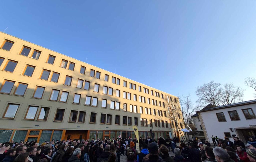 Heute in Weimar Demonstration vor dem Marie-Juchacz-Saal, in dem der Weimarer Stadtrat über den Haushalt entscheidet. Vor zwei Tagen ein Änderungsantrag im Namen von CDU und Weimarwerk – mit potentieller Zustimmung mindestens einer der beiden Weimarer AfDs –, die finanzielle Unterstützung für mehrere zivilgesellschaftliche Aktionsbündnisse komplett zu streichen, auch für das Weimarer Bürgerbündnis gegen Rechtsextremismus. Das gewonnene Geld könnte unter anderem für die Bildung einer Kommission verwendet werden, die überprüft, ob der Weimarer Zwiebelmarkt immaterielles Kulturerbe werden kann. Oder für einen hollywoodzeichenähnlichen Schriftzug WEIMAR, der mobil in der Stadt bewegt werden kann und damit Touristinnen als fotogener Fotohintergrund dienen könnte.