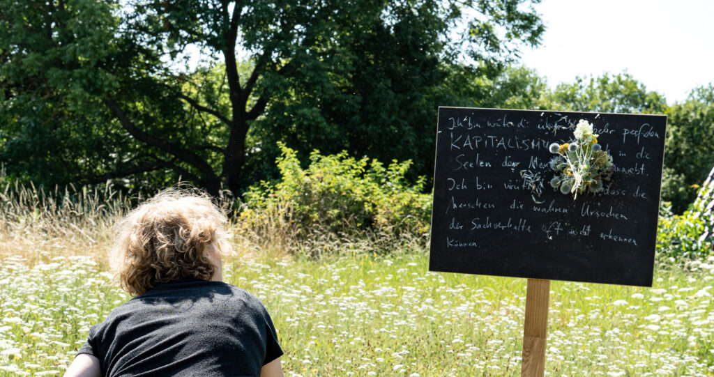 Anstatt Blumen zu überreichen, warf Susanne Hennig-Wellsow 2020 im Thüringer Landtag dem soeben zum Ministerpräsidenten gewählten Thomas Kemmerich Blumen vor die Füße. Viereinhalb Jahre später fuhren die Filmemacherin Yvonne Andrä und ich ins ländliche Thüringen, um über die Wut zu sprechen. Wer wollte, konnte mit Kreide Wuterregendes an eine Tafel schreiben und Blumen dagegenwerfen. Diese Begegnungen sammelten wir unter verschiedenen Kategorien in Gesprächsauszügen und Fotos, die auf www.blumenwurf.de nachzusehen und lesen sind.